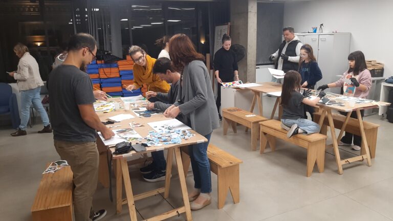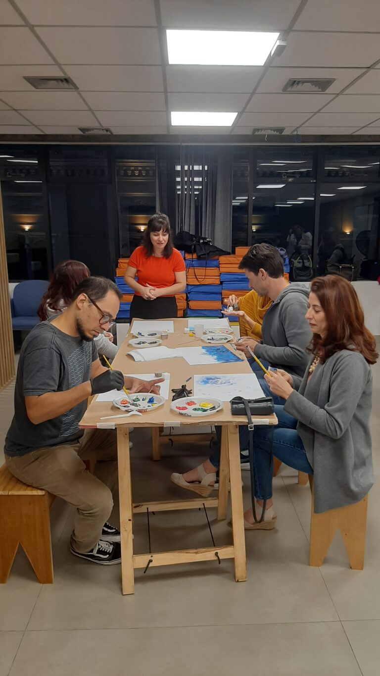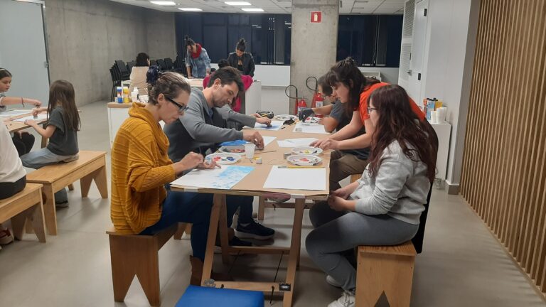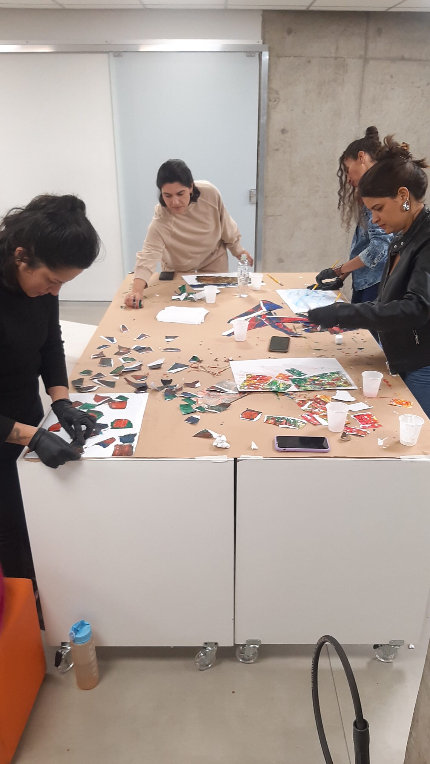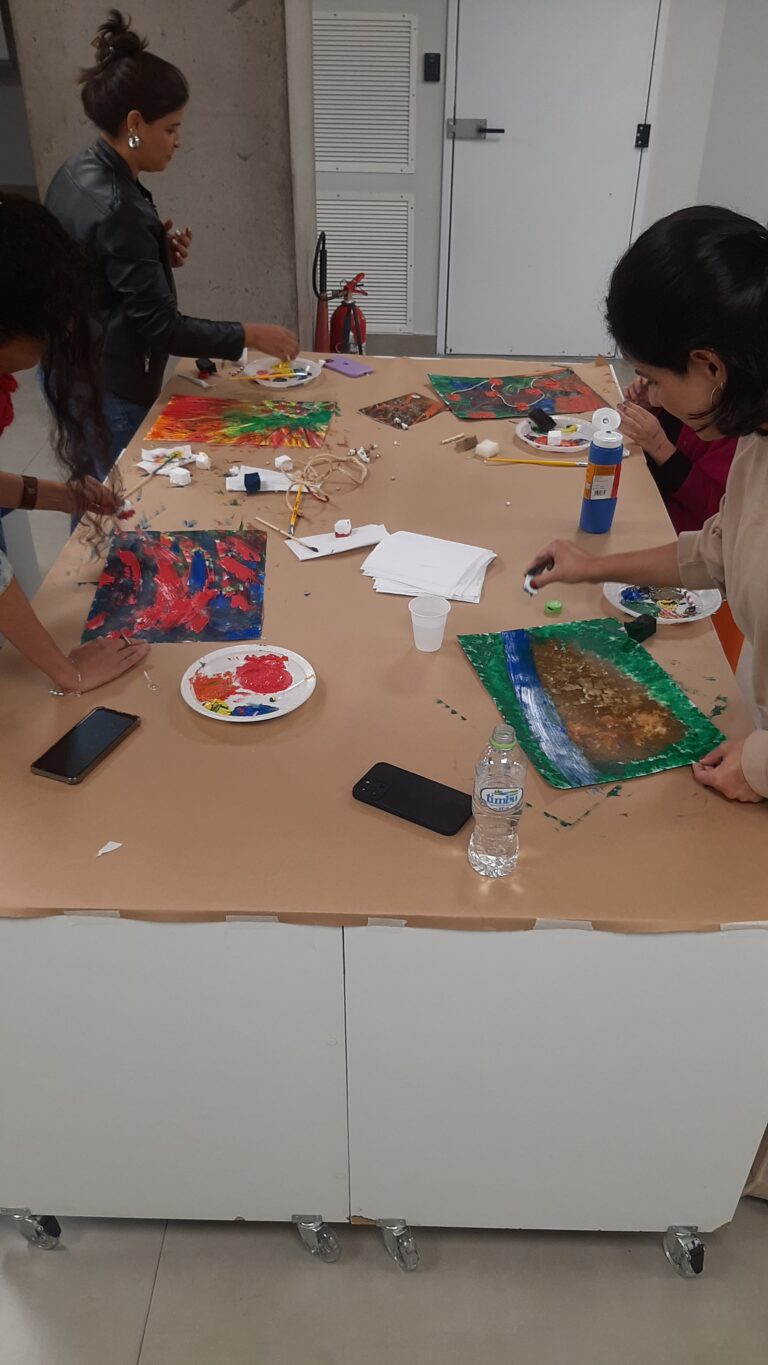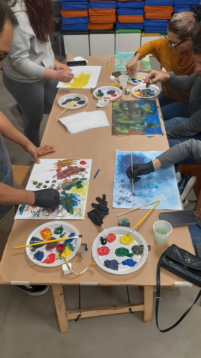A atividade convidou o público à explorar diferentes possibilidades expressivas por meio da pintura, inspirando-se na exposição Matéria ao Redor e no uso de sobreposições pictóricas. Essa proposta teve como objetivo estimular a criatividade, a compreensão sobre os conceitos básicos das cores, das formas, do espaço. Através de aproximação com o uso de materiais diversos e precários experienciando texturas e contrastes visuais, aproximando o público sobre a relação de suas habilidades e experimentações com materiais diversos, a produção artística individual ou coletiva e a apreciação de diferentes formas de expressão.